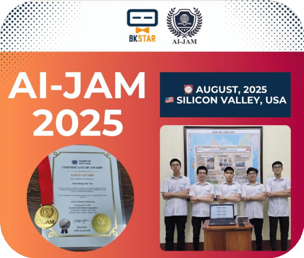 BKSTAR vô cùng tự hào khi được đồng hành, dẫn dắt và hỗ trợ 5 học sinh Việt Nam xuất sắc chinh phục cuộc thi sáng tạo quốc tế AI JAM US được tổ chức tại Silicon Valley, California, Hoa Kỳ.